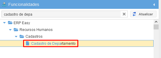 Acesse o cadastro de Departamento: