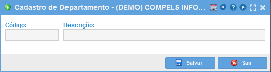 Para cadastrar um novo Departamento clique em "Novo", e preencha os seguintes campos: