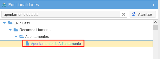 Acesse Apontamento de Adiantamento em:
