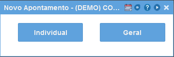 Para realizar o apontamento geral, na tela do apontamento ao clicar no botão "Novo" selecione a opção "Geral".