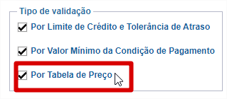 E caso utilize Tabela de Preço, é possível Bloquear Pedido cujo item esteja com valor inferior ao da Tabela utilizada.