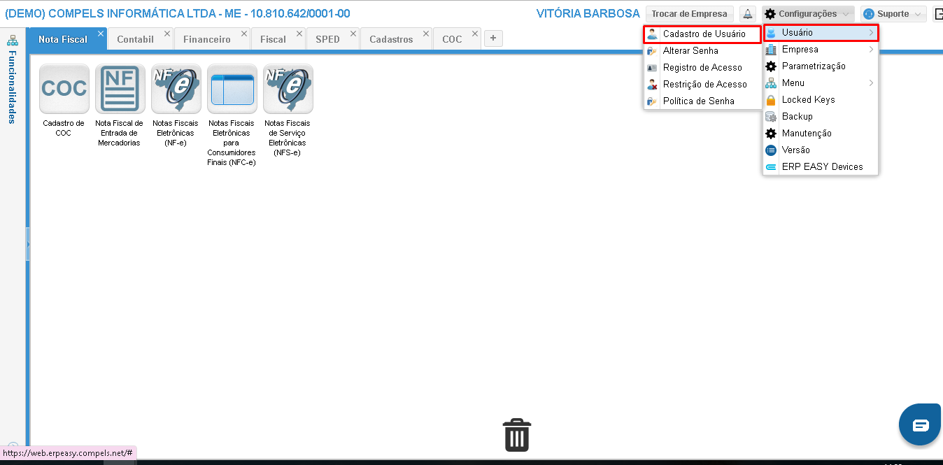 Para sincronizar sua conta do ERP Easy ao dispositivo móvel, cada usuário precisa solicitar ao administrador do sistema em sua empresa que configure seu usuário da seguinte forma: