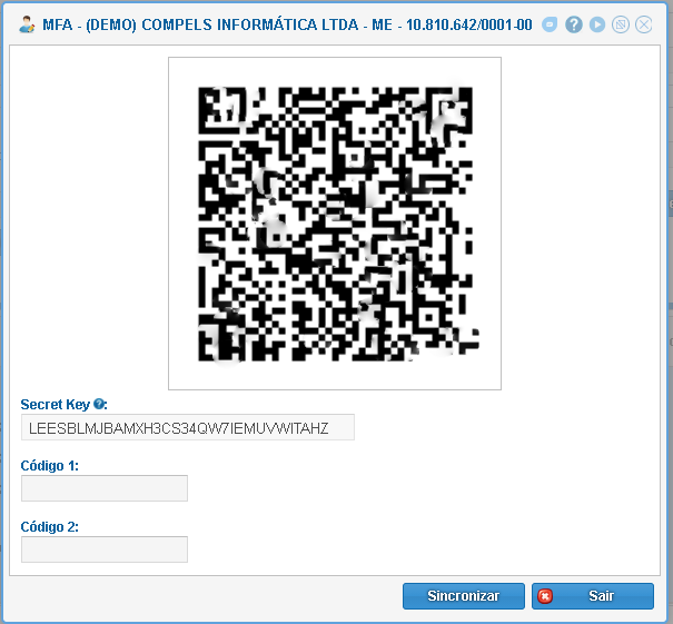 Após 30 segundos, um novo código será disponibilizado, o qual deverá ser inserido na segunda opção: