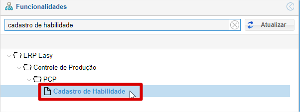 Acesse a função de Cadastro de Habilidade.