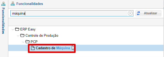 Acesse a função de Cadastro de Máquina.