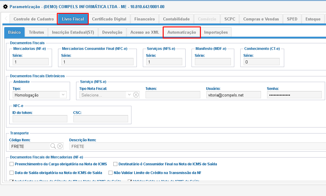 - Empresa: Neste campo, poderá marcar quais empresas da mesma base de dados terão a mesma automatização.