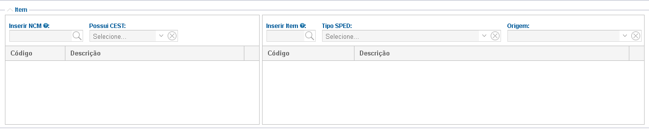 - Tipo SPED: verifica itens deste determinado Tipo Sped;