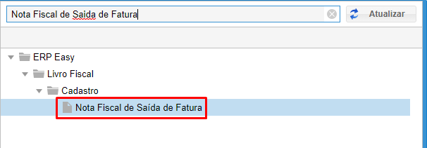 Para criar uma nova nota ou consultar notas já existentes, acesse "Nota Fiscal de Saída de Fatura" conforme imagem abaixo.