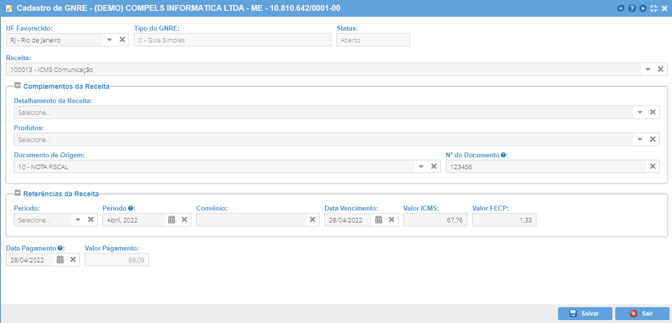 Após o preenchimento, salve a guia no botão "Salvar".