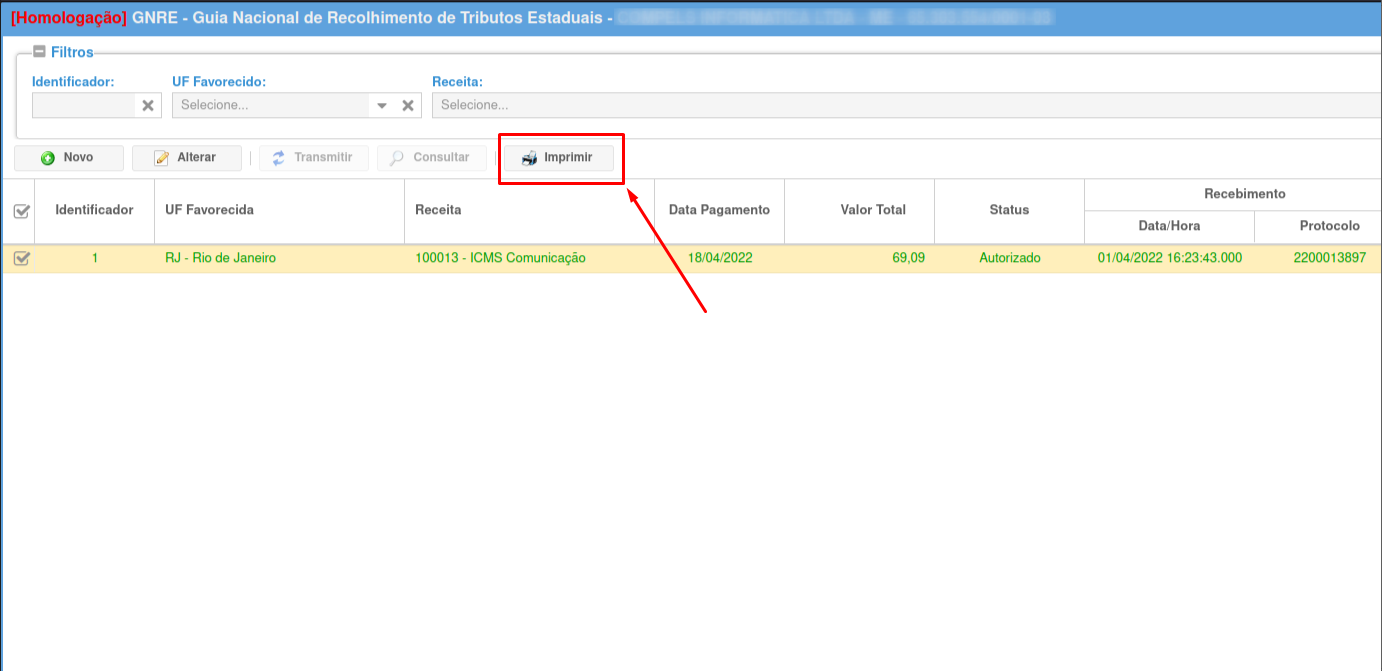 Para imprimir a Guia, selecione e clique em "Imprimir".
