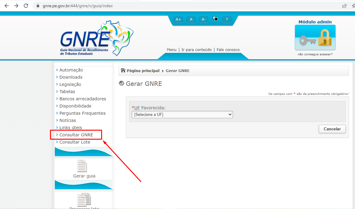 Consultando a GNRE pelo Portal