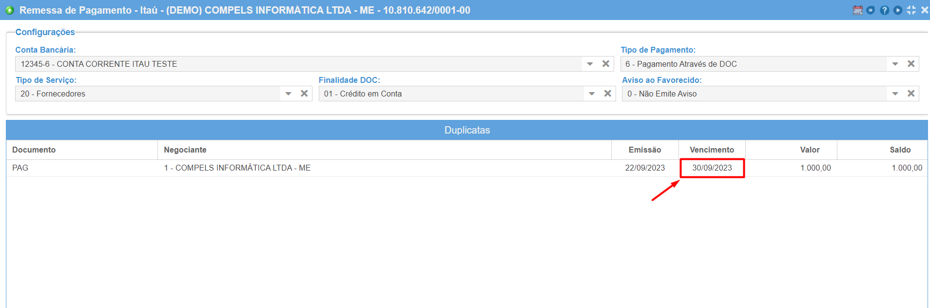 Lembrando que o agendamento no banco será no dia do vencimento.