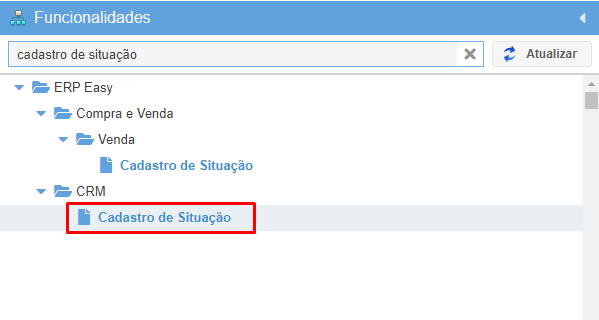 Para começar, acesse nas Funcionalidades: "Cadastro de Situação".