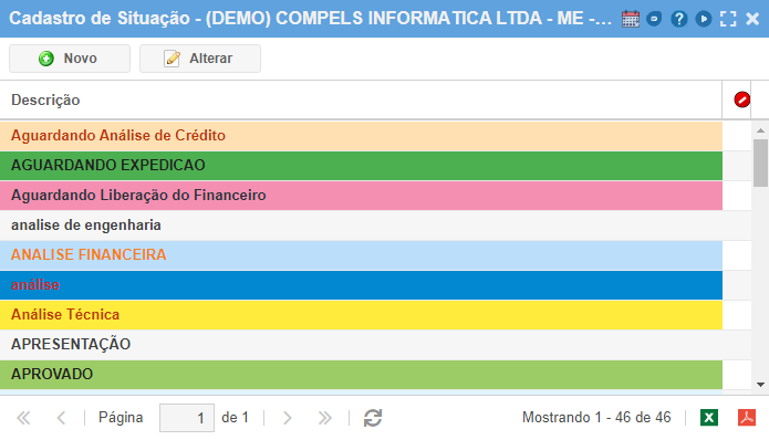 Para cadastrar um nova Situação, clique no botão "Novo" e seremos direcionados para a imagem abaixo.