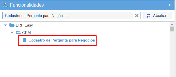 Acesse nas funcionalidades: "Cadastro de Pergunta para Negócios".