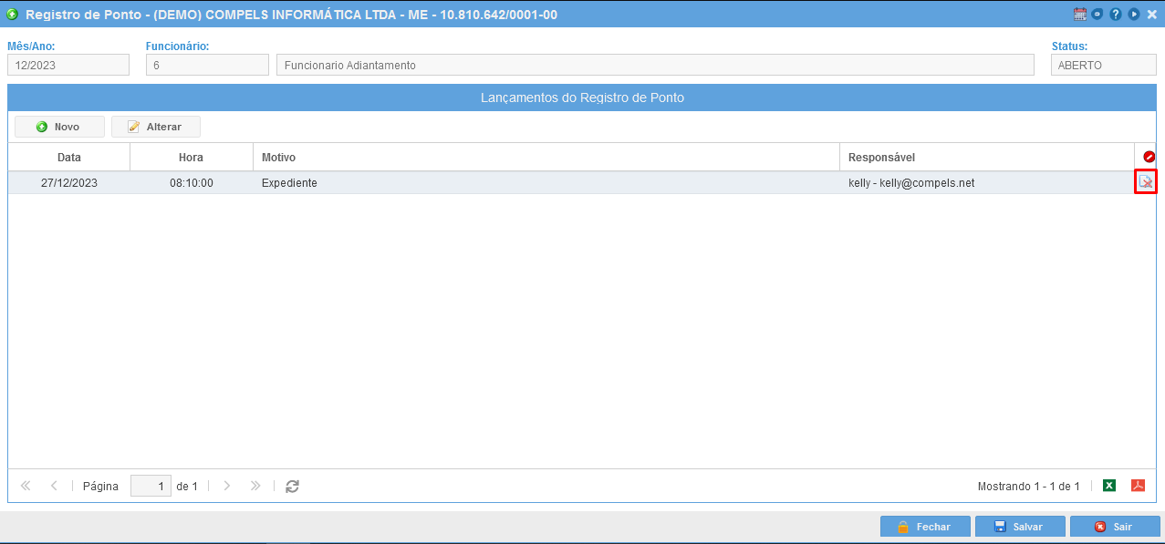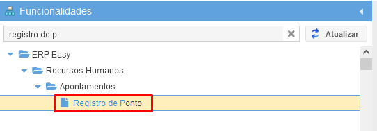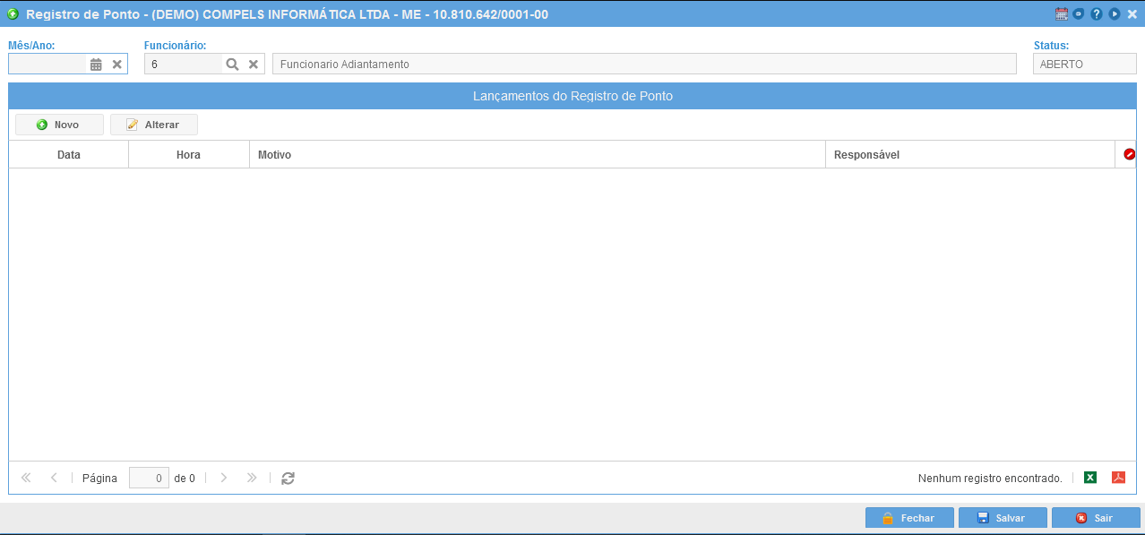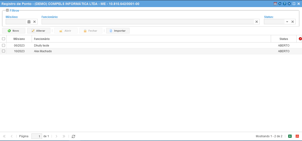 Ao acessar a página irá listar todos os registros de pontos efetuados, é possível buscar registros utilizando os filtros disponíveis.