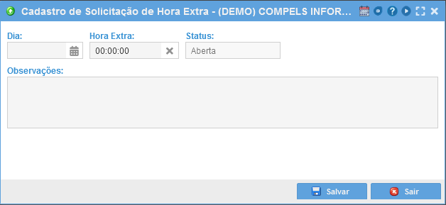 Dia: Informe o dia que será realizado essa hora extra;