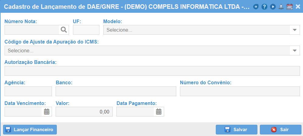 Modelo: Escolha o modelo do lançamento, se é DAE ou GNRE.
