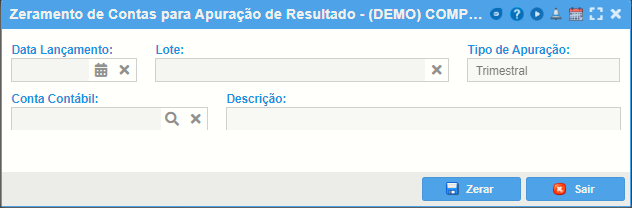 Conta Contábil: informar a conta contábil que será utilizada para ser contrapartida nos lançamentos deste zeramento.