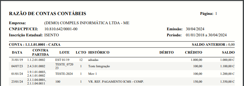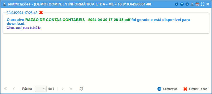O razão poderá ser gerado tanto em planilha Excel quanto em PDF.