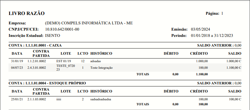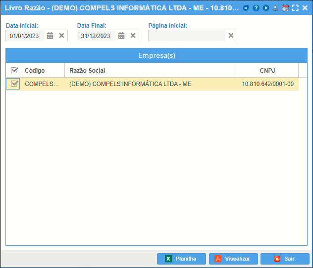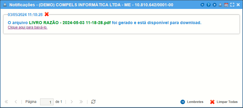O razão poderá ser gerado tanto em planilha Excel quanto em PDF.