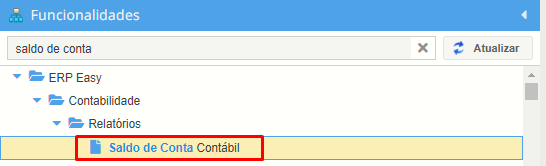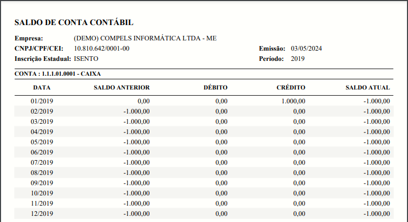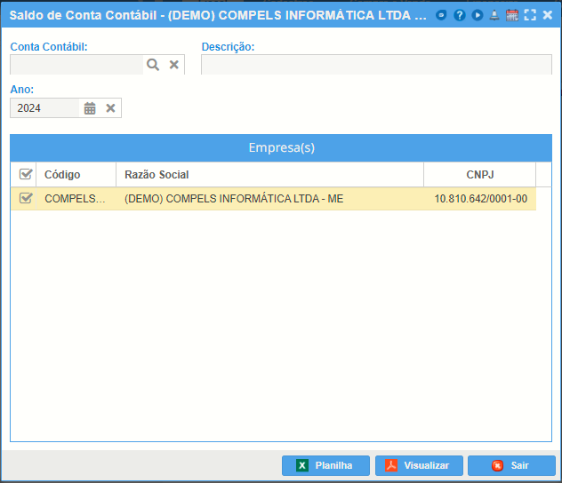 Conta Contábil: informe a conta contábil que será gerada neste relatório.