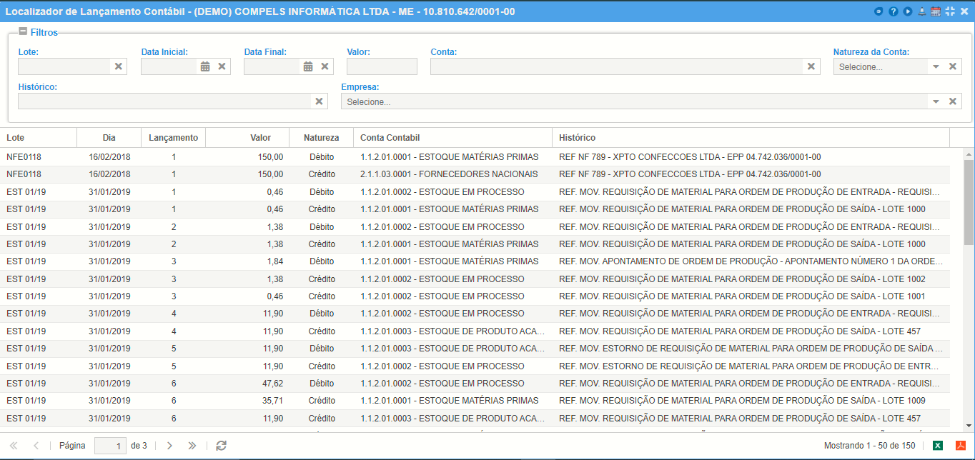 O Localizador de Lançamento Contábil possibilita uma fácil consulta de lançamentos contábeis já efetuados.