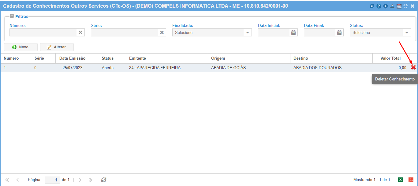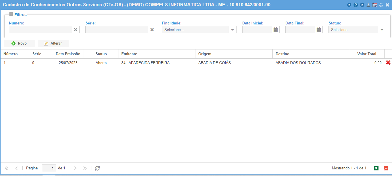 Acesse a funcionalidade "Cadastro de Conhecimentos Outros Serviços (CTe-OS).