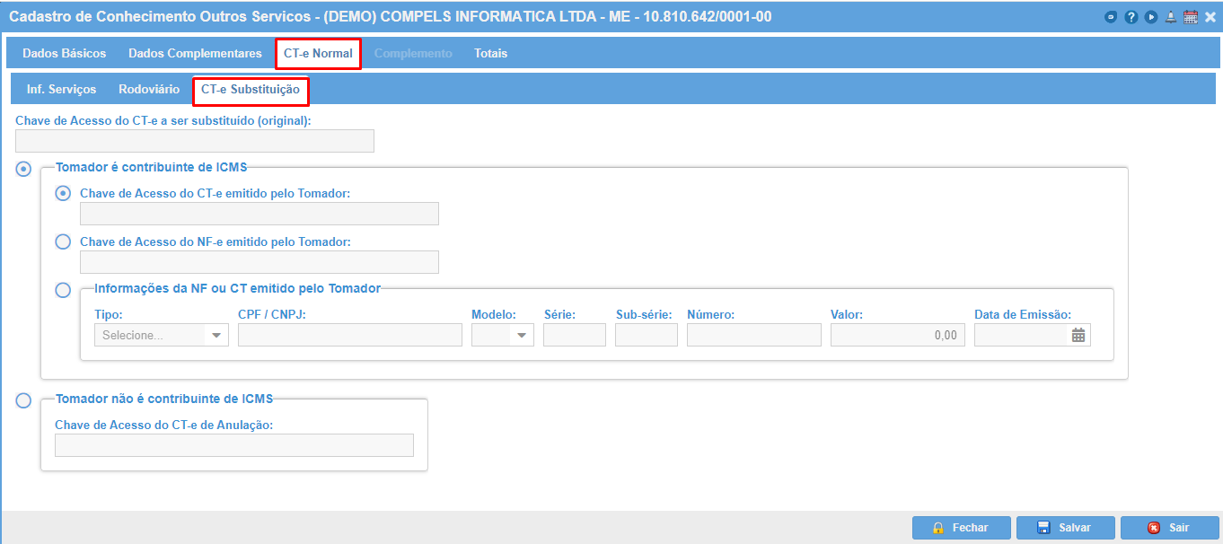Caso seja um CT-e de Substituição insira as informações correspondentes.