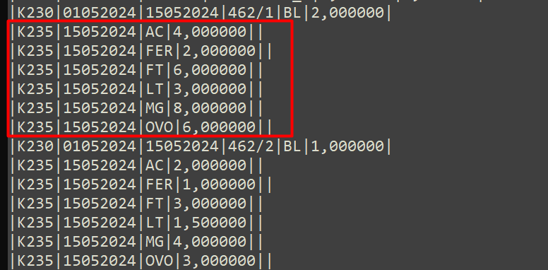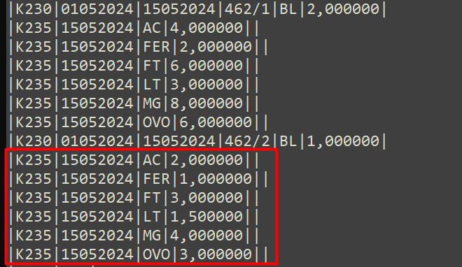Obs.: Remanejamentos do com o mesmo item de origem e destino não entram nesse registro.