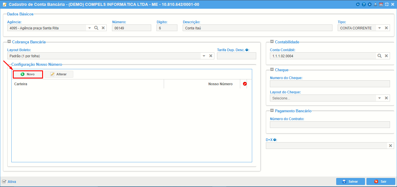 - Caso a empresa já utilize este serviço por outro software, deverá também ser fornecido o último nosso número utilizado mas caso seja a primeira vez então o nosso número pode iniciar com 0.
