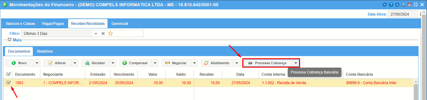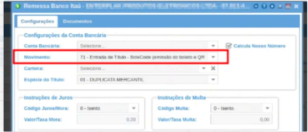 A aba Documentos serve para visualizar todos os títulos que serão gerados no arquivo remessa, esta aba serve apenas para conferência, caso alguma informação esteja divergente deve-se alterar na duplicata.