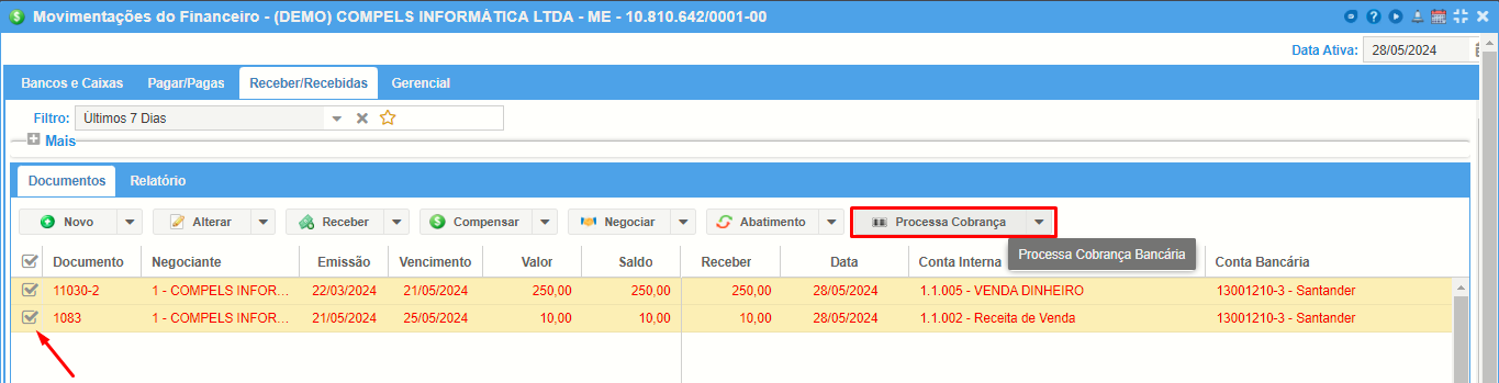 - Cobrança Online: permite que a remessa seja enviada automaticamente do sistema para o banco.