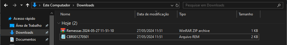 Um arquivo ZIP será baixado no seu computador, conforme exemplo.