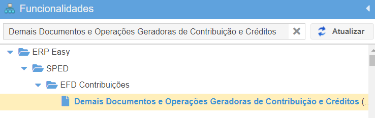 Essa funcionalidade tem como objetivo lançar os valores das demais operações, aquisições, despesas, custos e encargos com direito à apuração de créditos das contribuições sociais, que devam constar na escrituração do período, como: receitas financeiras, receitas de aluguéis, despesas de aluguéis, despesa de armazenagem de mercadorias, etc.