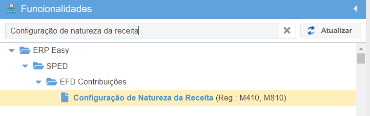 Essa funcionalidade tem como objetivo lançar os códigos de natureza da receita vinculando ao NCM ou item e ao CST de saída (venda). Nos registros M410 (PIS) e M810 (COFINS) serão mostrados o valor total das vendas agrupando por código.
