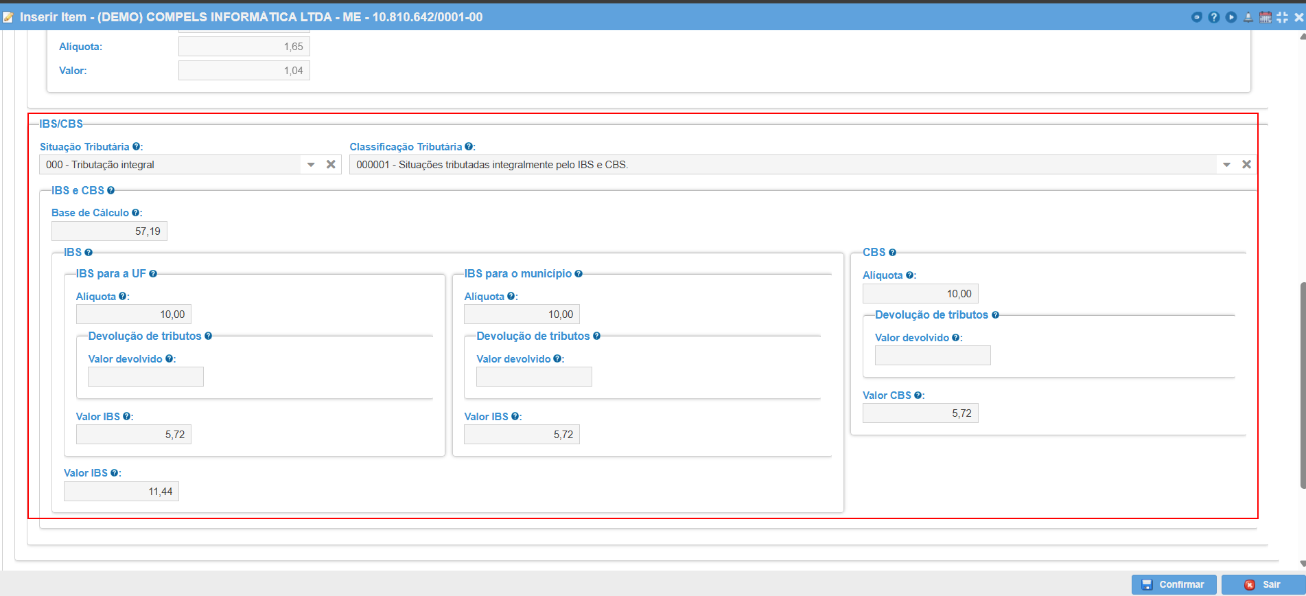 Na Nota Fiscal de Consumir, os novos campos ficam no grupo de IBS/CBS.