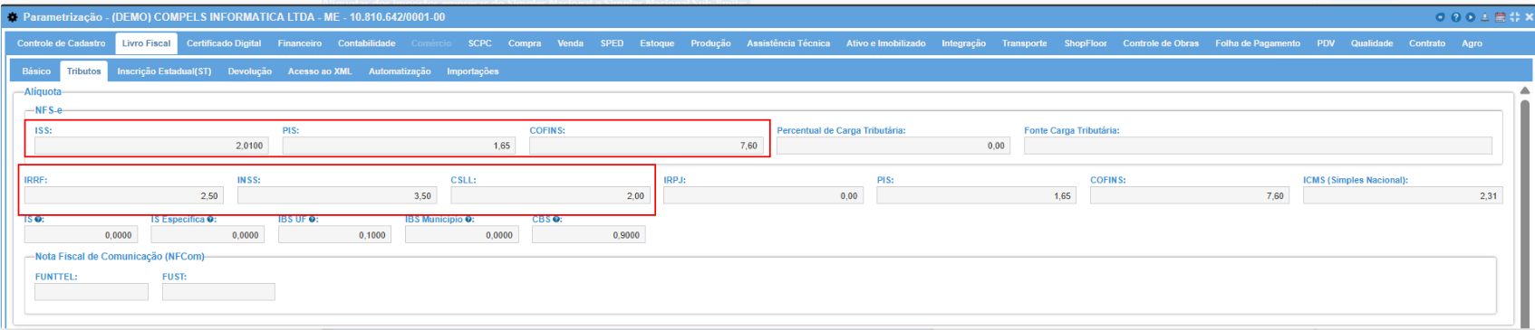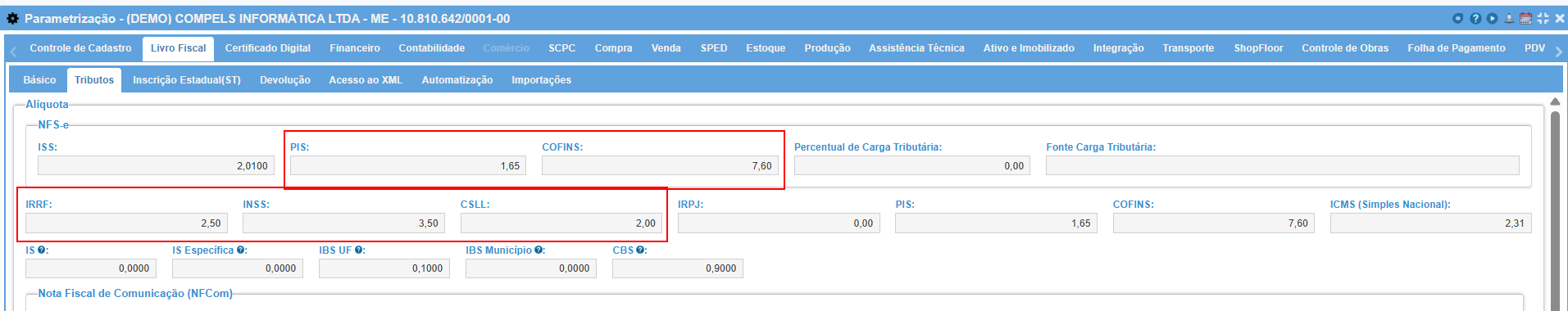 Acesse a parametrização da empresa, aba Livro Fiscal/Básico.