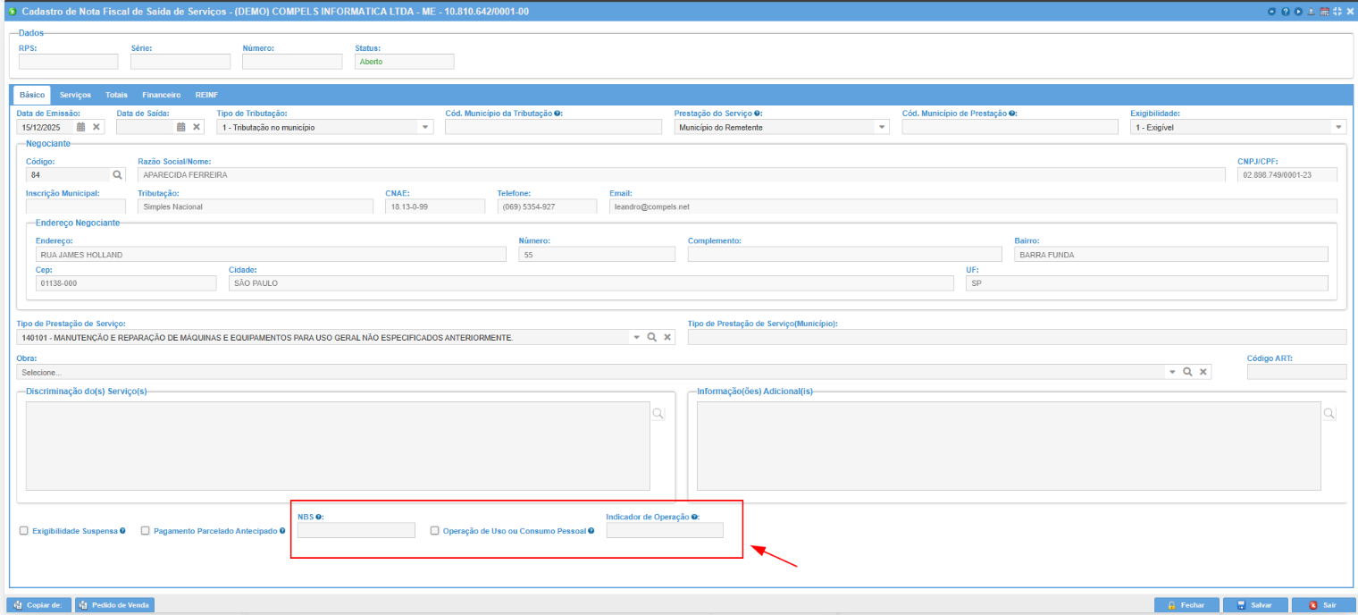 Insira o NBS: Nomenclatura Brasileira de Serviços: campo obrigatório. Consultar em: https://www.gov.br/mdic/pt-br/images/REPOSITORIO/scs/decos/NBS/Anexoa_Ia_NBSa_2.0a_coma_alteraa_esa_6.12.18.pdf