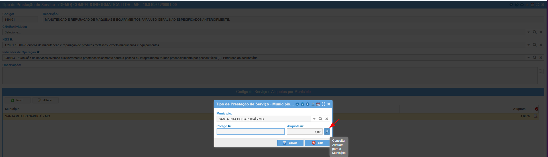 Utilize a lupinha para que o ERP faça a busca da alíquota cadastrada no portal nacional para o serviço/município.